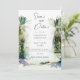 El diseño Save The Date acuarela Invitation es realmente cautivador y evoca un sentido de relajación y paraíso tropical. La técnica de acuarela empleada para crear las palmeras les da una calidad suave y soñadora, como si se balancearan suavemente en una cálida brisa oceánica. La invitación se ve reforzada por los colores vivos que se utilizan, con tonos verdes y azules que recuerdan a un paisaje tropical. El conjunto de la invitación es a la vez elegante y lúdico, con las palmeras enmarcando el texto en un modo que llama la atención sobre los detalles importantes. La combinación de tipos de letra manuscritos y de bloques le da un toque de fantasía y personalidad a la invitación. Los elementos coincidentes están disponibles. Consulta nuestros otros elementos de esta colección. https://www.zazzle.com/collections/tropical_beach_palm_trees_watercolor-119762289003294034