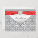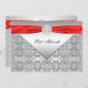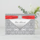 El arco rojo elegante de la cinta de satén del centro del diamante en un cordón de plata del diamante cubrió la invitación de Mitzvah del palo.