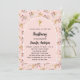 Marco de arco sobre un patrón de pampas hierba y flores rosadas y una cruz dorada. Personalice y agregue un nombre y detalles.