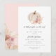Celebre la próxima llegada de una pequeña calabaza con este elegante tema de calabaza invitación a la ducha de bebé. Esta encantadora invitación incluye una calabaza blanca con detalles de flores y pampas secas rosadas y fondo rosa suave