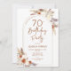 Invitación a la fiesta de cumpleaños número 70 en terracota naranja quemado y blanco. Hermoso diseño minimalista moderno con acentos botánicos pintados a mano. Presenta pasto pampas, hojas, rosas y tipografía de escritura. La temática del desierto de estilo bohemio moderno es perfecta para otoño, invierno, primavera o verano. Puede seleccionar invitaciones impresas y/o una plantilla digital de descarga instantánea. Perfecto para una elegante celebración de los 70 cumpleaños femenina.