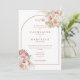 Hermosas pampas florales acuarelas y arco de moda enmarcan los detalles especiales de la celebración boda y las iniciales de los monogramas en la elegante tipografía de terracota en esta elegante invitación a la boda. Diseñado por Thisisnotme©
