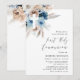 Un diseño floral moderno con flores de color azul acuático y pasto pampas. Los colores y el texto se pueden personalizar.
