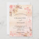 Un fondo de color oro rosa, color rosa oscuro, fino y de aspecto metálico. Decorada con rosa de oro y flores rosadas, rosas, pampas y mariposas. Personalice y agregue nombres y detalles.
