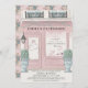 Esta encantadora cafetería/panadería/pastelería temática chica de café/ducha para bebés ofrece un fondo crema con una pastelería francesa/panadería/cafetería escaparate en rosa. En el reverso, un fondo rosa con motivos florales. Personalice sus necesidades. Puedes encontrar más productos a juego en mi tienda.