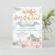 Pancarta de Camión Rosado Invitador Onederland Invitación de primer cumpleaños Chicas de invierno en tierra firme invitación de primer cumpleaños con algunos animales de bosque en un camión rosa, pancarta azul, pinos y copos de nieve.