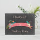Elegante, personalizado, plantilla de invitación a la fiesta de cumpleaños número 12 para chicas con hermosos ilustraciones vectoriales rosas decorados con flores coloridas, lindas, de estilo vintage y hojas sobre un fondo de tiza vintage negro de moda. Elegante, elegante, moda, glamuroso, moderno, contemporáneo, floral, personalizados invitaciones para celebrar fiestas de cumpleaños para niños de doce años. Estas sofisticadas, onduladas, bonitos, de moda, fiestas invitan a los niños cumpleaños decorados a ambos lados / tienen doble cara de impresión / están impresas delante y detrás. Todo el texto en el lado frontal y reverso es totalmente personalizable / personalizable para satisfacer sus necesidades. Si necesitas ayuda para personalizar tu producto, por favor contacta conmigo a través de mi tienda y estaré encantado de ayudarte. POR FAVOR, TEN EN CUENTA QUE Todos los productos de Zazzle tienen imágenes impresas planas.