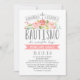 Hermosa invitación al bautismo para una bebé con rosas de acuarela pintadas a mano, tipografía moderna.