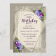 Invitación de cumpleaños de color marrón con un fondo de textura de madera que crea una estética rústica, encantadora o caprichosa. El contraste entre las delicadas y coloridas flores y el sólido grano de madera natural crea un aspecto a la vez elegante y sobrio. Sólo tienes que añadir tu información al personalizar de la invitación de cumpleaños.