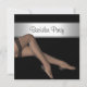 Invitación de despedida de soltero, anuncios de piernas con medias de red de chica negra plateada para despedida de soltero
