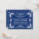 Real azul y blanco papel picado Quinceañera invitación a cumplir 15 años. Esta invitación mexicana al estilo del arte folclórico presenta flores blancas y hojas con fondo azul real.