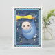 Un pequeño bebé dulce empuja su dirige hacia fuera del paquete azul llevado por la cigüeña mientras que él vuela con la noche estrellada. ¡Este ilustracion digital original es evocador de un libro viejo de la mamá ganso que amé como niño, y está seguro de hacer que sus huéspedes sonríen mientras que las deja saber que el paquete de alegría es un muchacho!