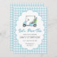 Esta invitación para el cumpleaños del personalizable incluye un retrato acuático de un carrito de golf con la leyenda "Let's Par - Tee".