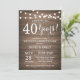 Invitación al 40º Aniversario de Boda. Fondo de madera rústica. Luces de Cadena. 1º, 2º, 3º, 4º, 5º, 10º, 15º, 20º, 25º, 30º, 35º, 40º, 45º, 50º, 55º, 60º, 65º, 70º, 75º, 80º, Cualquier año. Cumpleaños adulto. Fiesta de cumpleaños de mujer o hombre. Para una mayor personalización, haga clic en el botón "Personalizar" y use nuestra herramienta de diseño para modificar esta plantilla.