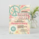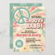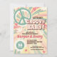Invitación para Baby Shower con tema de Hippie de los 60 – Qué emoción, gente, descubran nuestra increíble invitación para baby shower de los 60 en verde. Con colores psicodélicos y un signo de paz relajado. La invitación perfecta para mostrar a todos que su pequeño espíritu libre está casi aquí. Diviértanse y no olviden mostrar su lado más auténtico. Paz, Amor y Fiesta. ¡Baby Groovy!