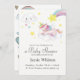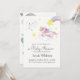 Esta imagen muestra un diseño elegante de invitación para baby shower con un unicornio caprichoso y un tema de nubes soñadoras. Los colores pastel suaves, junto con adorables ilustraciones de un unicornio dormido y estrellas dispersas, crean un ambiente cálido y delicado. En el centro del diseño, un texto con estilo invita a los seres queridos a celebrar esta ocasión alegre.