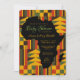 Esta invitación para baby shower de tribu africana presenta elementos tribales en falso oro, centro con forma de África y colores de fondo cambiables. Puedes personalizar esta invitación inspirada en África para que se ajuste a cualquier esquema de color que combine bien con los elementos dorados.