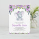 Invitación para Baby Shower de Elefante Morado