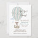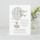 Celebra una llegada especial con esta caprichosa invitación de baby shower que presenta un globo aerostático de color azul pálido y un perro lindo montado en la canasta. El dulce mensaje “¡Arriba, arriba y lejos!” y los colores neutrales en cuanto al género lo hacen perfecto para bebés varones o cualquier celebración alegre de baby shower.