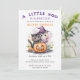 Una invitación para baby shower de Halloween Little Boo, gatitos y calabazas lindas.