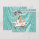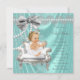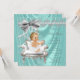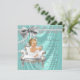 Elegante invitación a baby shower en azul turquesa y gris plateado con una adorable bebé vestida con un precioso tutú blanco y perlas en una hermosa silla blanca sobre un fondo satinado brillante y perlado. Esta elegante invitación a baby shower femenina en azul turquesa y satén plateado con brillo perlado se personaliza fácilmente para su evento añadiendo simplemente los detalles en la redacción y estilo de fuente de su elección. Este es un diseño impreso sin satén real, perlas, brillo, etc. Puede eliminar el fondo de satén y agregar su propio color.