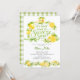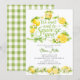 Celebra a tu pequeño con esta encantadora invitación de baby shower de limón que presenta dulces limones de acuarela, delicadas flores y un fondo de gingham verde fresco. La juguetona frase "No podemos esperar para abrazarte" hace que este diseño sea perfecto para un baby shower de cítricos, una celebración de verano o un tema de baby shower neutral en cuanto al género.