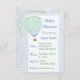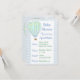 Personaliza esta adorable invitación para Baby Shower de Niño en Globo Aerostático azul con la información de tu baby shower en el área de personalización. Colores azul y verde.