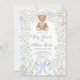 Invitación de baby shower grandmillennial de cuadros rosados, Baby shower de niña, Baby shower sureño preppy, Baby shower de dulces, Invitación temática de lazo azul
