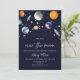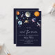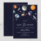 ¡Celebra la próxima llegada de tu pequeña estrella con esta invitación de baby shower Sobre la Luna! Con planetas de acuarela, cohetes y estrellas brillantes contra un cielo azul marino profundo, este diseño celestial es perfecto para amantes del espacio y celebraciones soñadoras. Personaliza con el nombre de la futura mamá, fecha, hora, ubicación y detalles de RSVP.