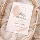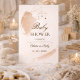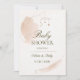 Tema celestial neutral con acentos de acuarela beige cálido y taupe, con una delicada ilustración de luna y móvil de bebé. El arte de línea minimalista y las formas de pincel abstractas suaves enmarcan la tipografía de guión moderna, adecuada para reuniones de baby shower, celebraciones inspiradas en la guardería y eventos familiares neutrales en cuanto al género.