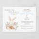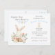 La invitación perfecta para aquellos con presupuesto. No es necesaria la compra de sobres. Dulce conejo de bosques en una canasta. Tipografía de "Hippity Hop" "Está a punto de caer en POP". Hecho en azul para la ducha de bebé.