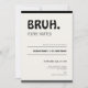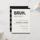 Plantilla de invitación de cumpleaños Bruh editable. Invitación de cumpleaños número 11 de Bruh para niños. Celebra el cumpleaños de tu hijo especial de 11 años con nuestra invitación en blanco y negro. Perfecta para la fiesta de cumpleaños de un niño o cualquier celebración adolescente emocionante, esta invitación de cumpleaños está diseñada para capturar la alegría de la ocasión. Nuestra invitación digital es una plantilla editable que te permite personalizar los detalles de manera rápida y sencilla. ¡Consigue la tuya ahora y haz que planificar el cumpleaños perfecto sea más fácil y divertido!
