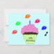 Delicioso cupcake de chocolate con glaseado rosa y sprinkles de colores y vela azul. Con ¡FIESTA! escrito en dulces coloridos alrededor del cupcake. Fondo azul turquesa claro. Perfecto para una Fiesta de Cumpleaños número 10. Personalizable para cualquier edad. Diseño de Arte Original por TamiraZDesigns.
