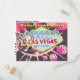 Invitaciones de despedida de soltero en Las Vegas con divertido arte retro de showgirl de casino. Fácil de personalizar, diseño de postal.
