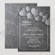 invitación con corazones y diseño de amor plateado para una feliz fiesta de 25º aniversario de bodas de plata