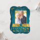 Esta elegante invitación para la foto del 50 aniversario de boda en azul verde y dorado con flores y volutas tiene una cinta dorada IMPRIMIR y un medallón de imitación de grabado en azul y dorado IMPRIMIR. Tiene un área de plantilla para que subas tu propia foto digital. Puedes eliminar el texto estilizado en cursiva "Aniversario de boda" o "50º". Todo el texto es personalizable, y también las opciones de papel. ****TEN EN CUENTA que si cambias a papel metálico dorado es un dorado muy oscuro y broncíneo y alterará los colores del diseño (vuelve la foto dorada, etc.), así que NO sugiero usar ese papel. El papel de fieltro también alterará ligeramente el color de tu foto. TAMBIÉN, si cambias las fuentes o tamaños de fuente, es posible que el texto no se ajuste correctamente. Zazzle no editará nada por errores tipográficos, alineación o cualquier otra cosa, y yo no veré tu invitación. Todo se imprimirá tal como aparece en tu monitor. Si necesitas ayuda con la invitación, por favor contáctame ANTES de hacer el pedido. Esta invitación está diseñada para ajustarse al tamaño 5x7 en tarjeta con forma curva. Si cambias a otro tamaño/forma, el diseño ya no se ajustará correctamente, así que si deseas un tamaño diferente, por favor contáctame para que pueda red