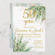 50 años merece una celebración! Esta invitación cuenta con hermoso eucalipto y acentos dorados. Todo el texto es editable (excepto el número 50 y la palabra años).