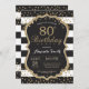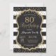 Invitación para el 80 cumpleaños para mujeres o hombres. Invitación de cumpleaños negra y dorada. Confeti brillante dorado. Rayas negras y blancas. Digital imprimible. Para una personalización adicional, por favor haga clic en el botón "Personalizar" y use nuestra herramienta de diseño para modificar esta plantilla.