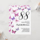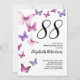 Esta bonita y caprichosa invitación para el 88 cumpleaños es perfecta para una fiesta agradable y establecerá un tono divertido y de celebración. Este diseño presenta mariposas rosadas y púrpuras, y es una buena opción femenina para un evento especial para celebrar un cumpleaños importante. Personaliza para tu propio año de cumpleaños.