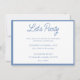 Estas elegantes invitaciones para fiesta de Bat Mitzvah con flores francesas azules incluyen la opción de personalizar completamente todos los títulos y textos. La parte delantera incluye texto azul y la parte trasera presenta un delicado diseño floral francés azul con estampado de toile junto con la foto de la Bat Mitzvah. Ingrese a la herramienta de diseño de Zazzle para personalizaciones de diseño adicionales.