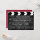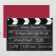 Invitación de claqueta de fiesta de graduación en negro y rojo lista para ser personalizada según tus especificaciones.