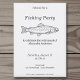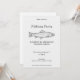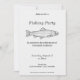 Una simple y minimalista invitación para una fiesta de pesca con una ilustración de una trucha en arte lineal. Podrías usarla para una jubilación, un cumpleaños, una fiesta al aire libre, una barbacoa de pescado, etc.
