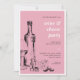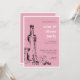 Invite a sus invitados a una celebración de vino y queso con esta invitación chic casual. El diseño presenta dibujos en blanco y negro de una botella de vino junto a un vaso, queso y aceitunas.