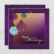 Celebra las vacaciones con esta impresionante invitación feliz. Cuenta con adornos tridimensionales violetas, verde azulados y dorados espumosos con toallas marrones y doradas ornamentadas y con un efecto discoteca. El borde de remolinos púrpura texturado da elegancia al diseño. Con un fondo dorado, blanco y violeta con un efecto atardecer, es una invitación perfecta para cenar fiesta o fiesta nocturno. Este diseño de invitación ofrece un aspecto profesional que el fiesta invita a un coste económico.