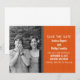 Anuncio divertido y geek para guardar la fecha de la boda con código binario en naranja con una simple plantilla de código binario y foto de fondo. ¡Este diseño original es perfecto para la pareja nerd que anuncia su boda! Fácil de personalizar, simplemente reemplace la foto con una propia y agregue los detalles de su boda. Haga clic en "Personalizar" para encontrar más opciones de personalización.