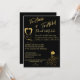 La simple y elegante letra dorada falsa y la caprichosa novia y el novio hacen que esta sea una invitación perfecta para la pareja que se ha escapado o acaba de tener una pequeña ceremonia privada, pero que está celebrando con una recepción solamente.