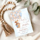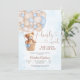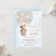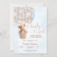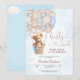 Celebra tu día especial con esta adorable invitación para baby shower de osito de peluche que presenta un dulce oso en una canasta levantada por globos pastel. El suave fondo de acuarela azul agrega un toque suave y acogedor, perfecto para homenajear a la futura mamá. Este encantador diseño es ideal para baby showers de niños, combinando elegancia y ternura para deleitar a los invitados. Personaliza con los detalles de tu evento para crear una invitación memorable que establece el tono para una celebración alegre.