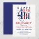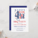 Invitación para la fiesta de parrillada y fuegos artificiales del 4 de julio con tipografía moderna. Está aislado sobre un fondo blanco, diseñado para la celebración del Día de la Independencia de Estados Unidos. La tipografía se puede personalizar en rojo y azul.