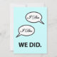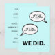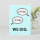 Invitación para la recepción después de la boda, anuncio de fuga o fiesta con divertido diseño "I Do I Do We Did" y texto personalizado en el reverso. Si ya están casados, se fugaron o tuvieron una boda en destino o una ceremonia en el juzgado y están celebrando la boda más tarde, personalice esta sencilla invitación con un toque de humor para su evento.