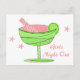 Una bebida rosa afrutada en un vaso con sombra verde. Una pajita rosa en espiral y una cuña de lima acentúan esta linda invitación para una noche de chicas.